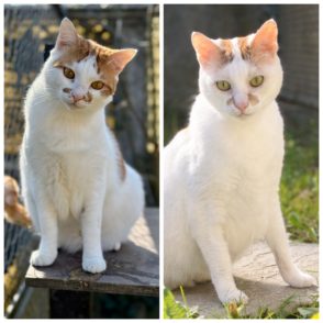 Deux adorables frères, très câlins et gentils. Ils sont sous nourriture urinary, un des deux a fait des calculs qui ont été opérés mais pour éviter la récidive, cette nourriture doit être continuée et ils l’aiment bien. Petit Flocon a été opéré de l’oeil et nécessite des gouttes minimums deux fois par jour. Si vous êtes prêts à leur ouvrir votre cœur, ils vous donneront le leur. Ils ont vécu en appartement avec une grande terrasse protégée, un extérieur (balcon plus ou moins grand serait un grand plus) pour autant qu’il soit protégé évidemment.