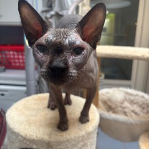 Adorable poilu sans poils. Nécessite une nourriture spéciale pour son petit bidou fragile et nettoyage et soins des yeux quotidien. Yuki s’entend avec les chiens.
